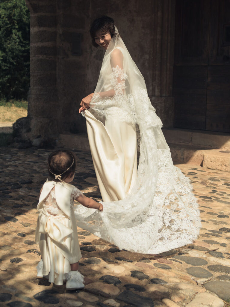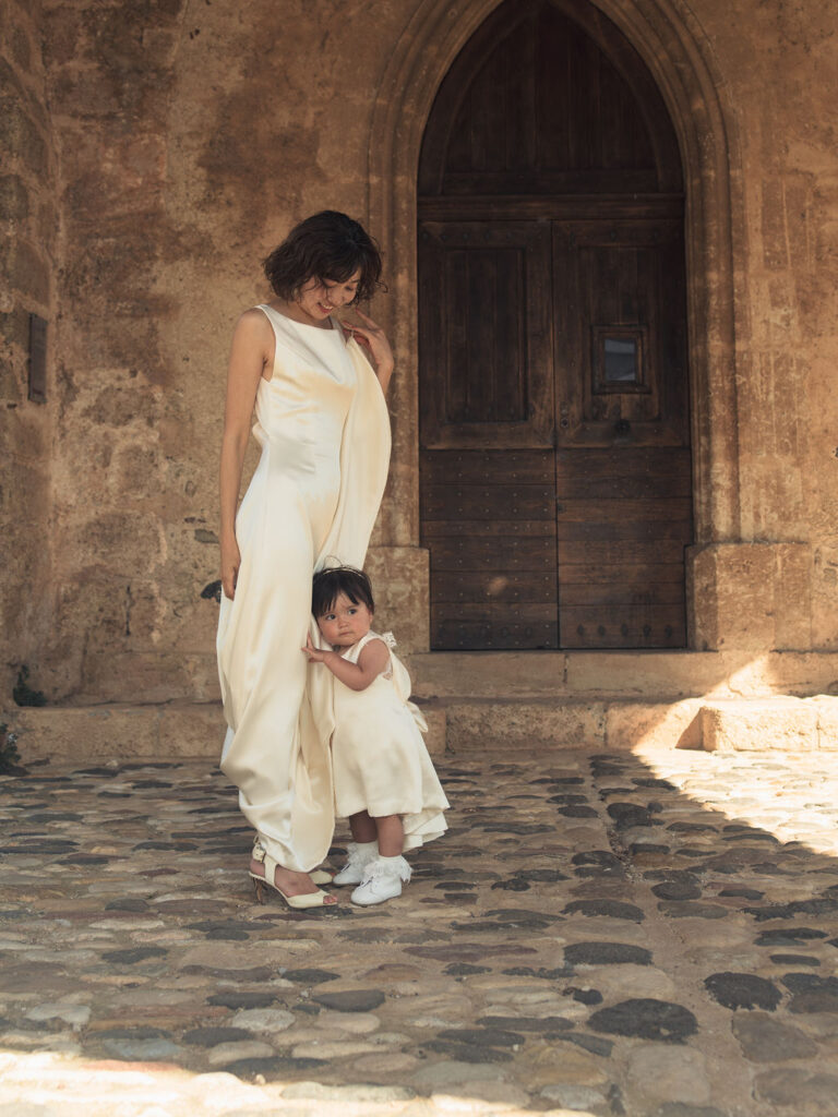 ニューヨークから仕入れたヘビーシルクを贅沢に作ったシンプルなドレス。背中の開きとVにカットしたアームホールがポイント!お揃いの生地で作った1歳用のドレスのあります。